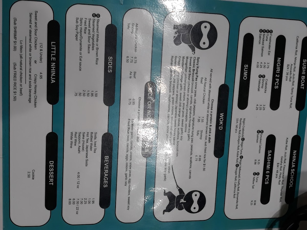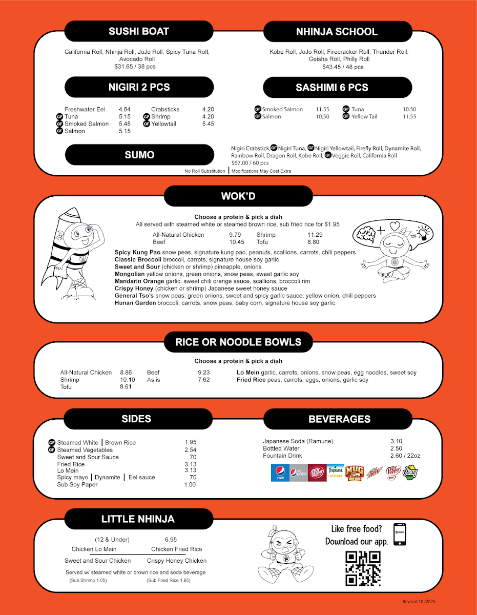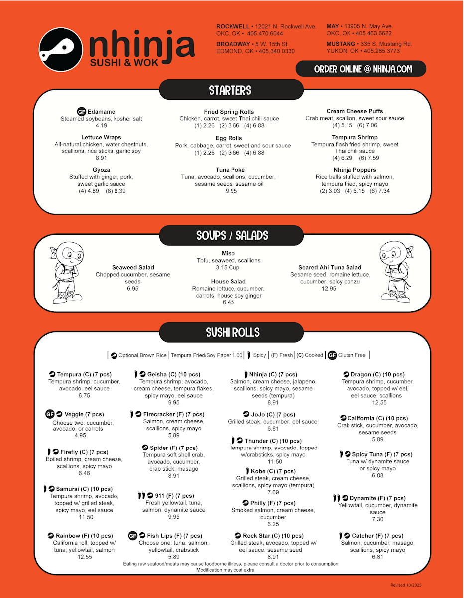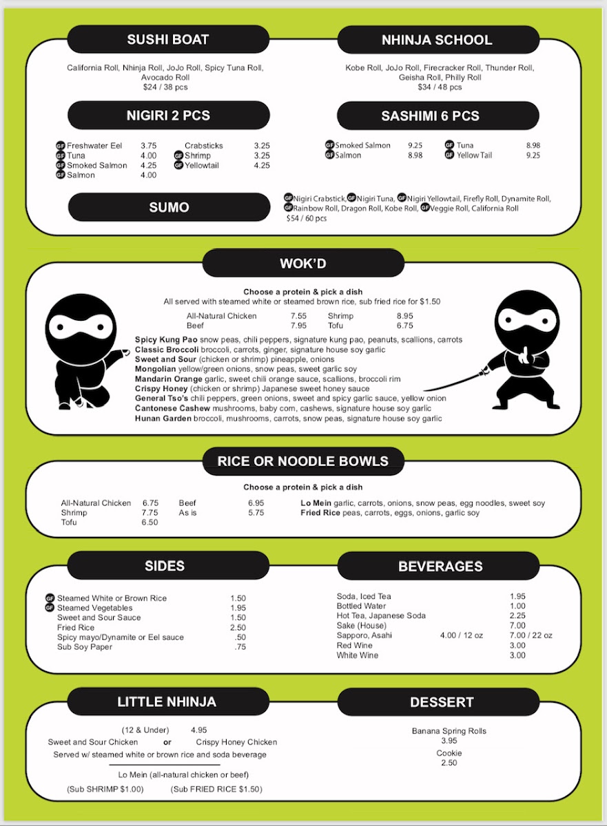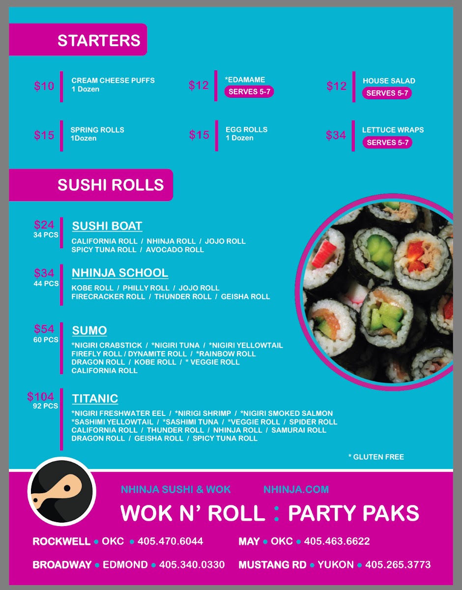 California Roll, Nhinja Roll, JoJo Roll, Spicy Tuna Roll, Avocado Roll